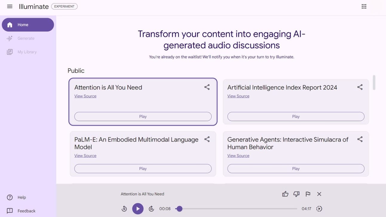 This new experimental AI tool by Google, called Illuminate, aims to transform written content into engaging AI-powered audio discussions. It’s currently in a waitlist phase, but the promise is to change how we consume and interact with information. The platform has a diverse library of AI-generated audio discussions you can demo right now on cutting-edge topics like large language models, generative AI, and the societal impacts of AI. As this technology develops, we might soon see a new era of knowledge dissemination that bridges the gap between written content and audio learning. 🎧📚