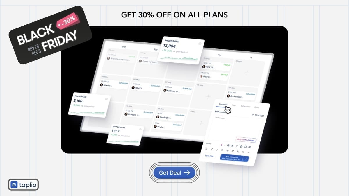 Taplio is an all-in-one LinkedIn growth tool that helps you write posts easier, respond to comments faster, and grow your brand without the burnout.