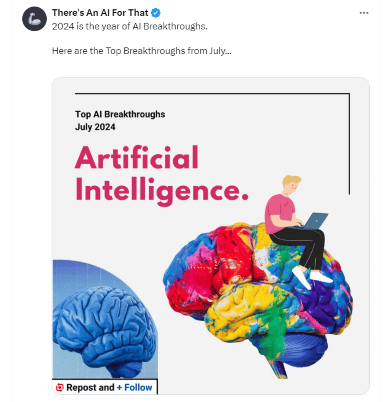 If you don’t have an account on X, you can still view this thread here: https://taaft.notion.site/Top-AI-Breakthroughs-for-July-2024-90f6fcf2b2af4e11919922ba0b7ffbf0