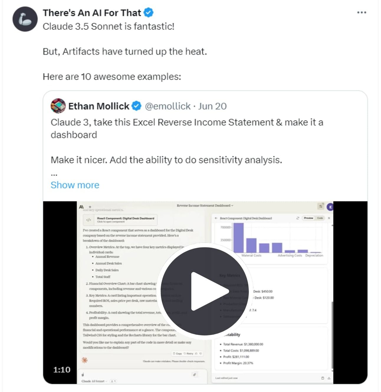 In this thread, we're showcasing 10 amazing examples of what Artifacts can do within Claude. From interactive dashboards to business intelligence graphics, these demos highlight the versatility and power of Artifacts. 🔥🚀