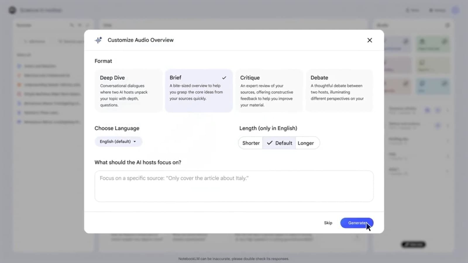 Now you can choose how you want to listen back: a Deep Dive that unpacks everything, a Brief for quick catch-ups, a Critique that feels like expert feedback, or even a Debate between two AI hosts hashing out the ideas. And it’s not just audio anymore: Video Overviews are live across 80 languages, so you can literally watch your notes and sources get turned into engaging recaps. Add in other features like mind maps, quizzes, and more, and it’s hard to overstate how much you’re missing if you’re not already using it. 🎥🎙️