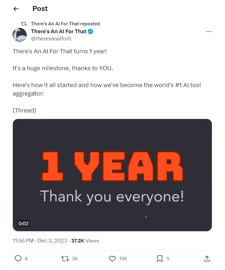 If you don’t have an account on X, you can still view this thread here: https://nitter.net/theresanaiforit/status/1731341541208191434