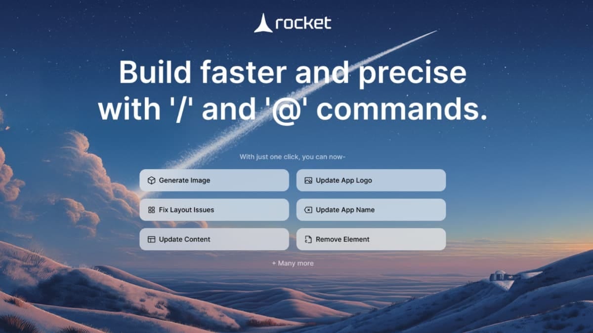 Rocket lets you build with commands instead. It gives you access to over 100 precise actions like: