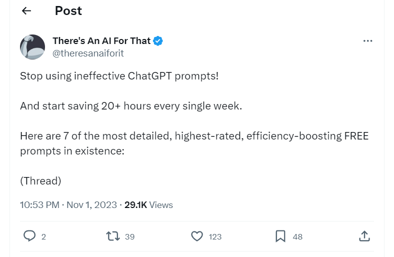 Here are some ChatGPT prompts that are serious time-savers. We're talking about the kind of detailed, top-notch prompts that could give you back a full day each week. Dive into this thread where we've shared 7 free gems that have been a game-changer for productivity geeks.
