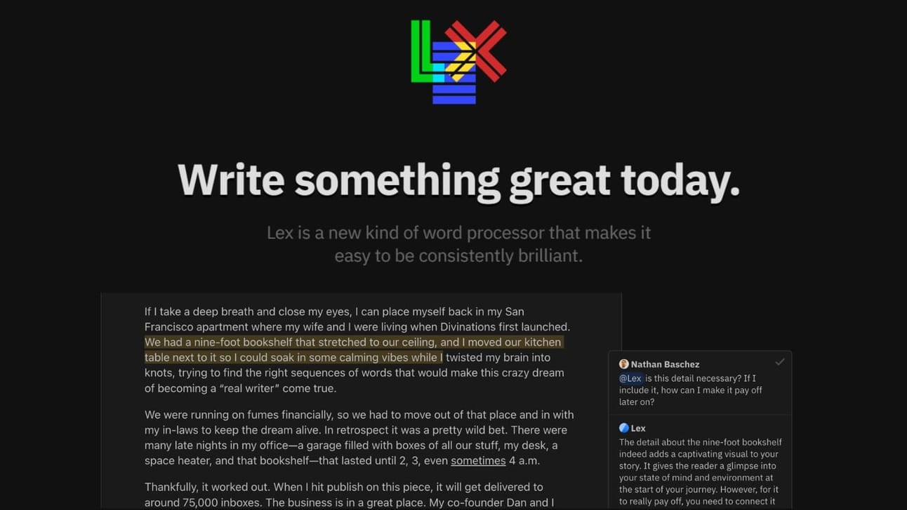 But Lex goes beyond just correcting mistakes; it offers suggestions for improving readability, clarity, and word choice, helping you craft content that truly resonates with your audience. With insights into readability scores, grade levels, and estimated reading times, Lex empowers you to fine-tune your writing for maximum impact. Whether you're drafting an email, crafting a blog post, or working on your next novel, Lex could be the writing partner you've been waiting for. 🖊️💡