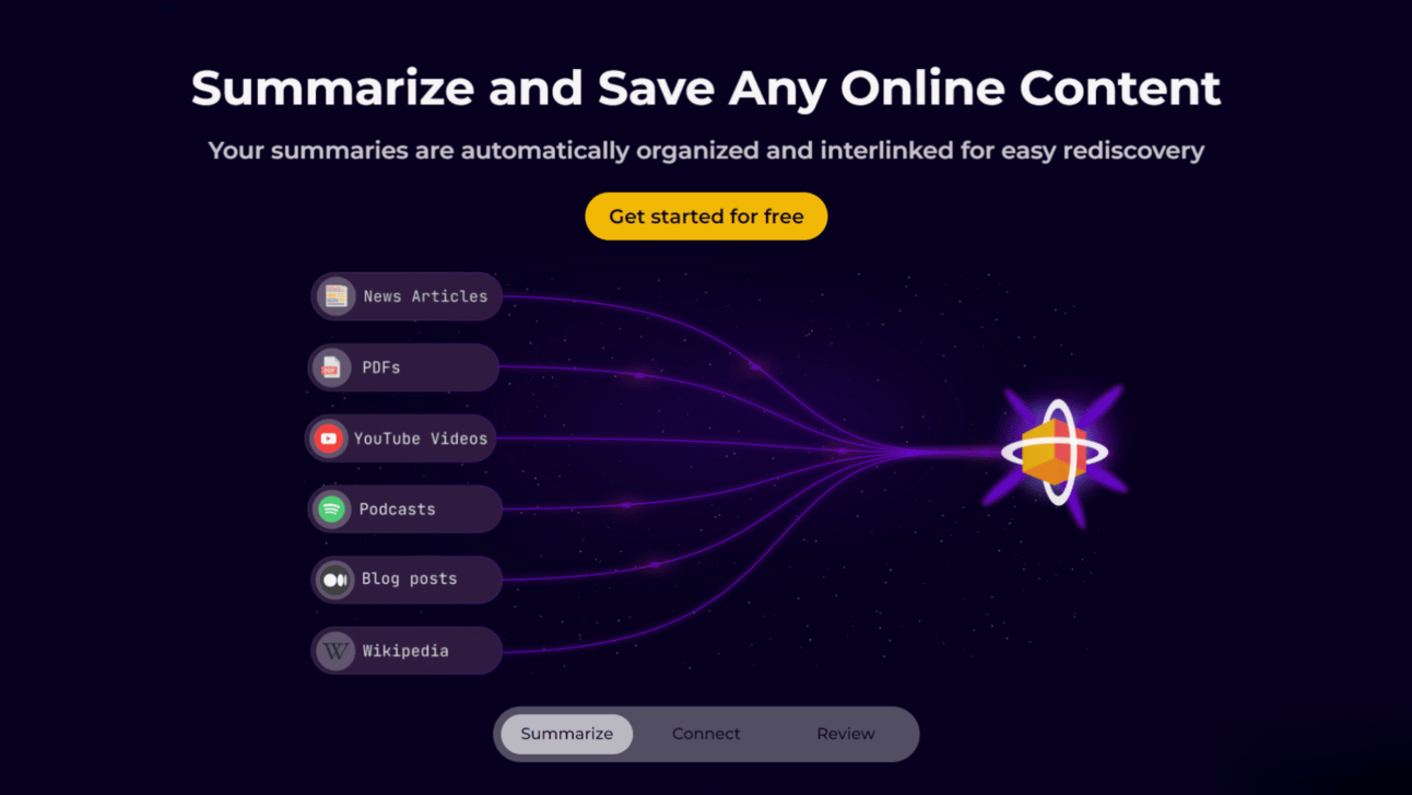Meet Recall, an AI tool that lets you quickly summarize and save anything from YouTube videos to articles, podcasts, recipes, and more into a personal knowledge base. Not only does it neatly categorize these summaries, but it also smartly links them with related content you've saved before, uncovering connections and bringing up relevant past content just when you need it.
