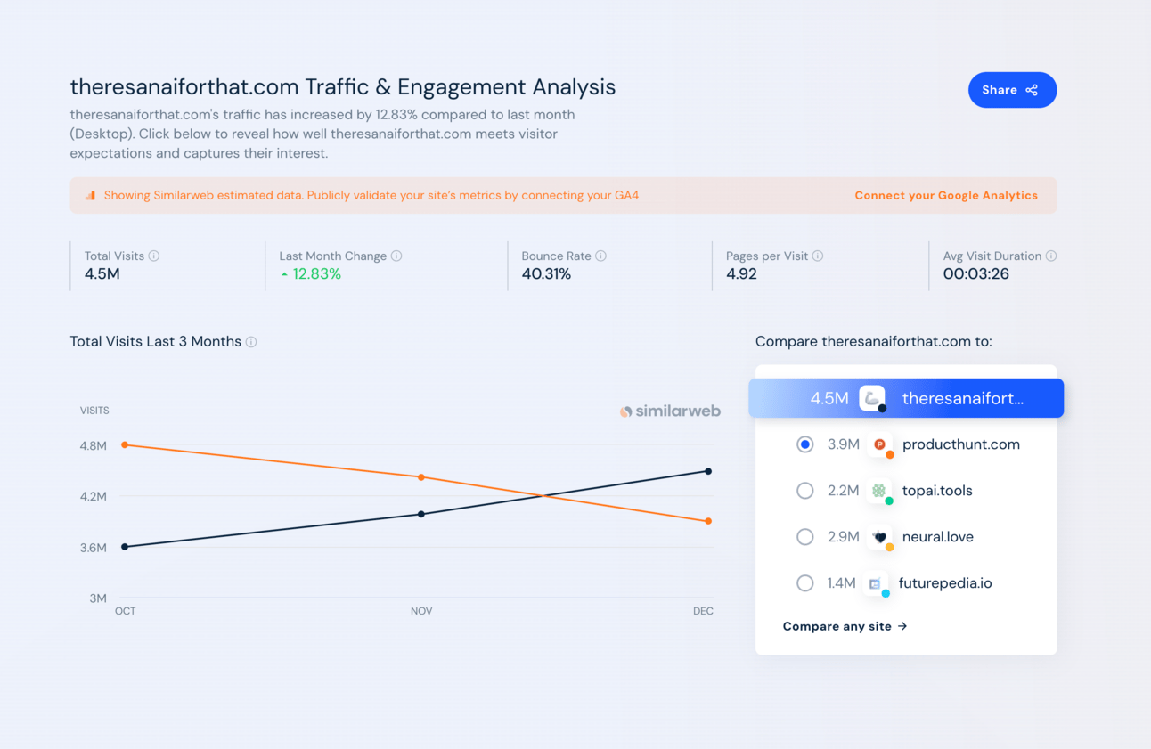According to Similarweb (December 2023 stats), There's An AI For That (TAAFT) is now bigger than Product Hunt.