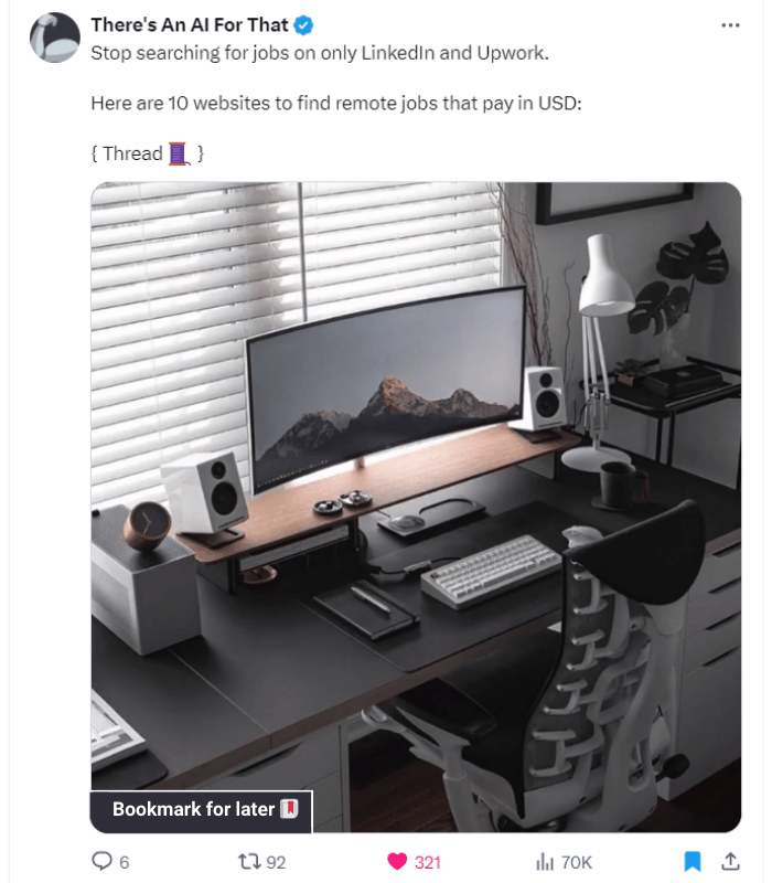 If you don’t have an account on X, you can still view this thread here: https://taaft.notion.site/10-websites-to-find-remote-jobs-4661c6622a324d10b4f2cf7f4f54404b